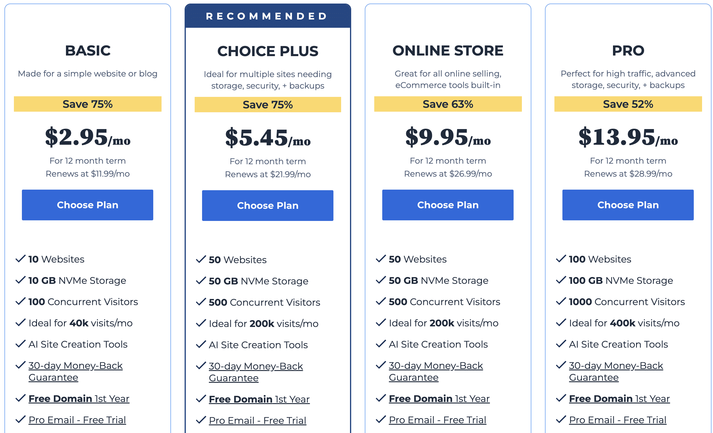 Bluehost Hosting Plans Pricing Screenshot