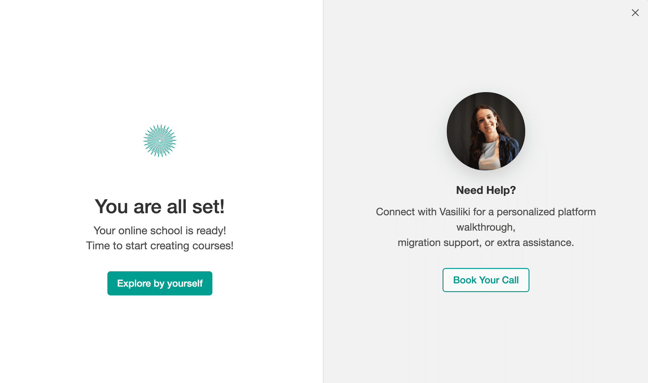 Learnworlds also offers personalized onboarding, which means you can schedule calls with their expert to set things up easily. However, this feature is only available in the learning center or on custom plans.