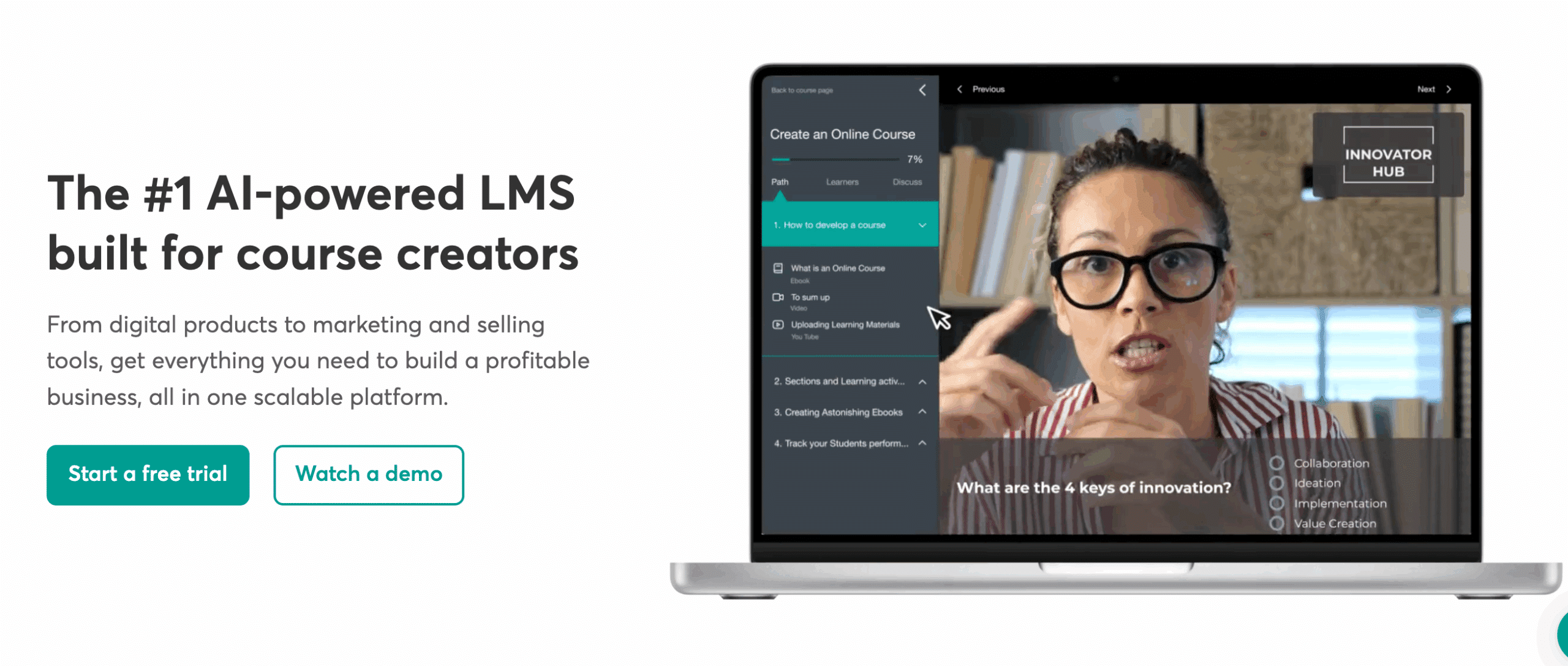 If you’re a beginner and don’t want to spend extra money on hosting to get your website live, then LearnWorlds is a great choice initially, but using a single platform, you can build both your courses and website as well.